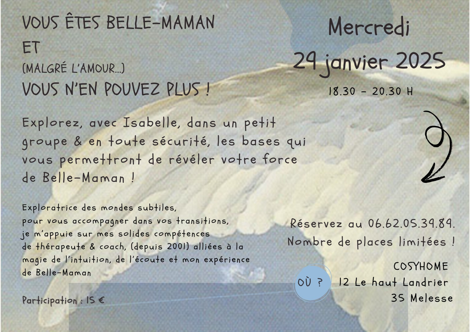 Explorez avec Isabelle, dans un petit groupe et en toute sécurité, les bases qui vous permettront de révéler votre force de Belle-Maman !